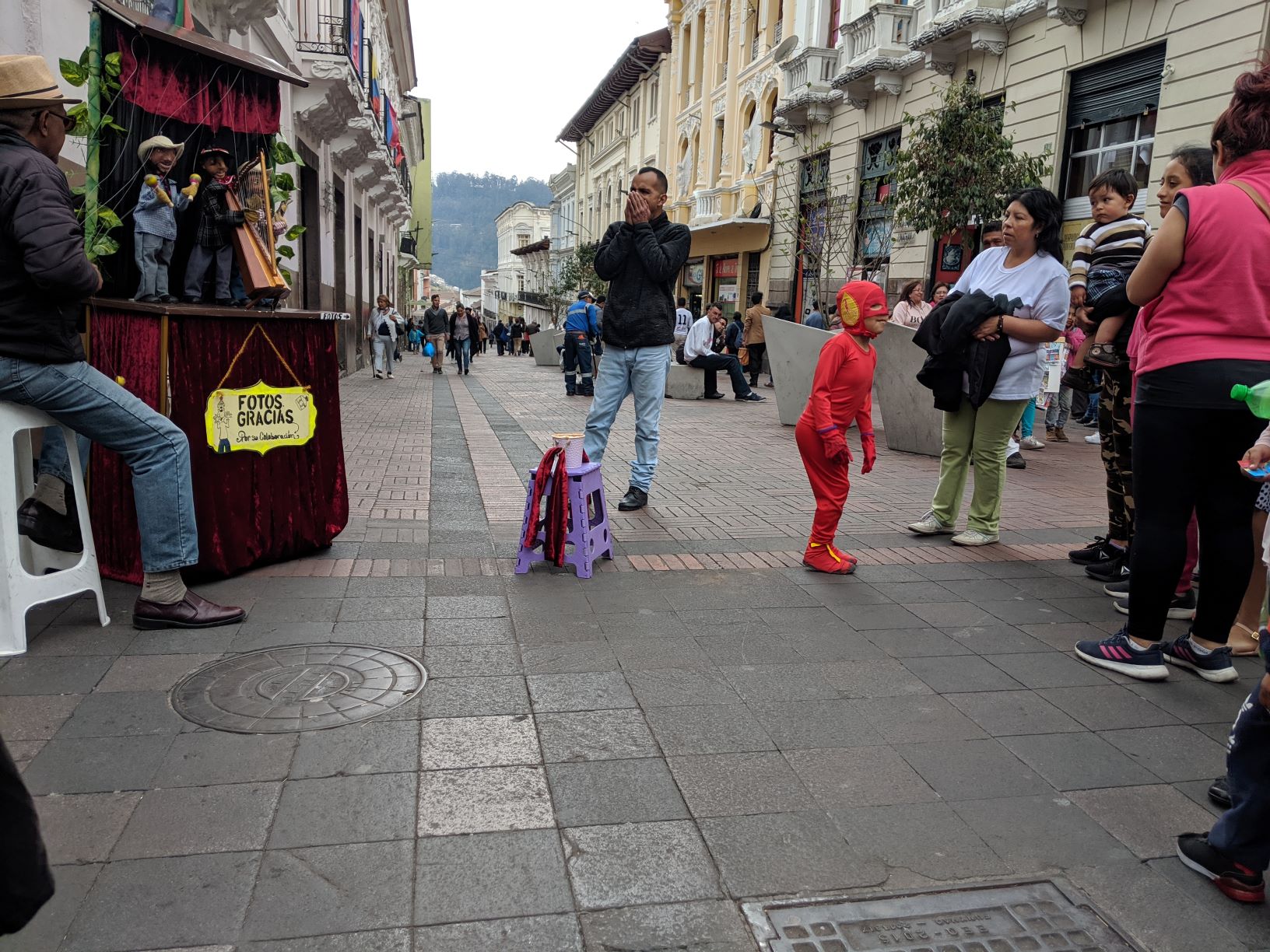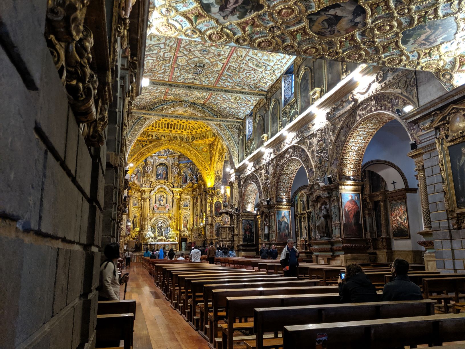 Wednesday afternoon we took a walking tour through Old Town with Sole, our lovely guide. She took us to the Mercado Centrale, the old Archbishop’s palace (now shops and restaurants), Plaza Grande, and La Ronda, and we learned about Quito’s long history of “getting rid” of presidents they didn’t like, its independent/revolutionary heart, and tried few local snacks. We took a peek into several other attractions along the way, including a particularly gorgeous church – Iglesia de la Compania de Jesus