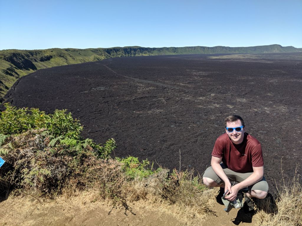 We also visited a fairly new lava flow on Isla Santiago. This flow was primarily pahoehoe (and therefore reasonably comfortable for lounging, as Bryn demonstrates below), and dated from around 1906. Early colonizer species were just starting to take hold here, and we saw a few lava lizards and some greenery starting to get a tentative toehold on the rocks.