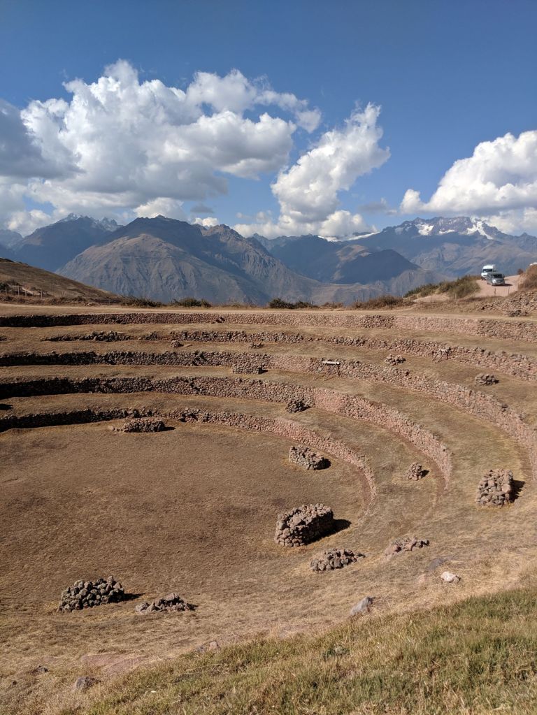 The archaeological site at Moray offers concrete proof of the importance of agriculture for the Incas (of course – everyone needs to eat). Located on the plateau above the valley, at an altitude of about 3500m, archaeologists have established that Moray was an agricultural laboratory. Sheltered in a natural bowl, each terrace here enjoys a slightly different microclimate, and archeologists have found that the terraces were built with soils from different parts of the Incan empire so they could experiment with potato, corn, and quinoa varieties to fine-tune growing requirements and ensure sites in other locations were growing the most efficient crops.